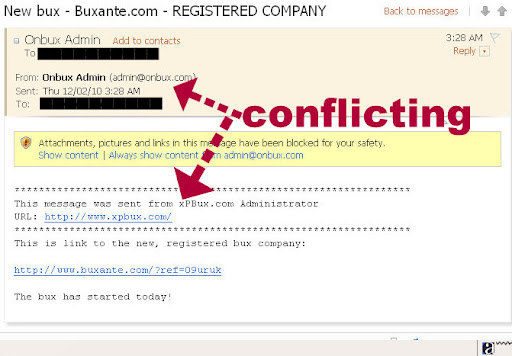 Hoje, um e-mail em massa foi enviado ao proprietário xpbux pedindo às pessoas que aderirem a este site. Aqui está a parte engraçada. Ele afirma que é de Onbux.